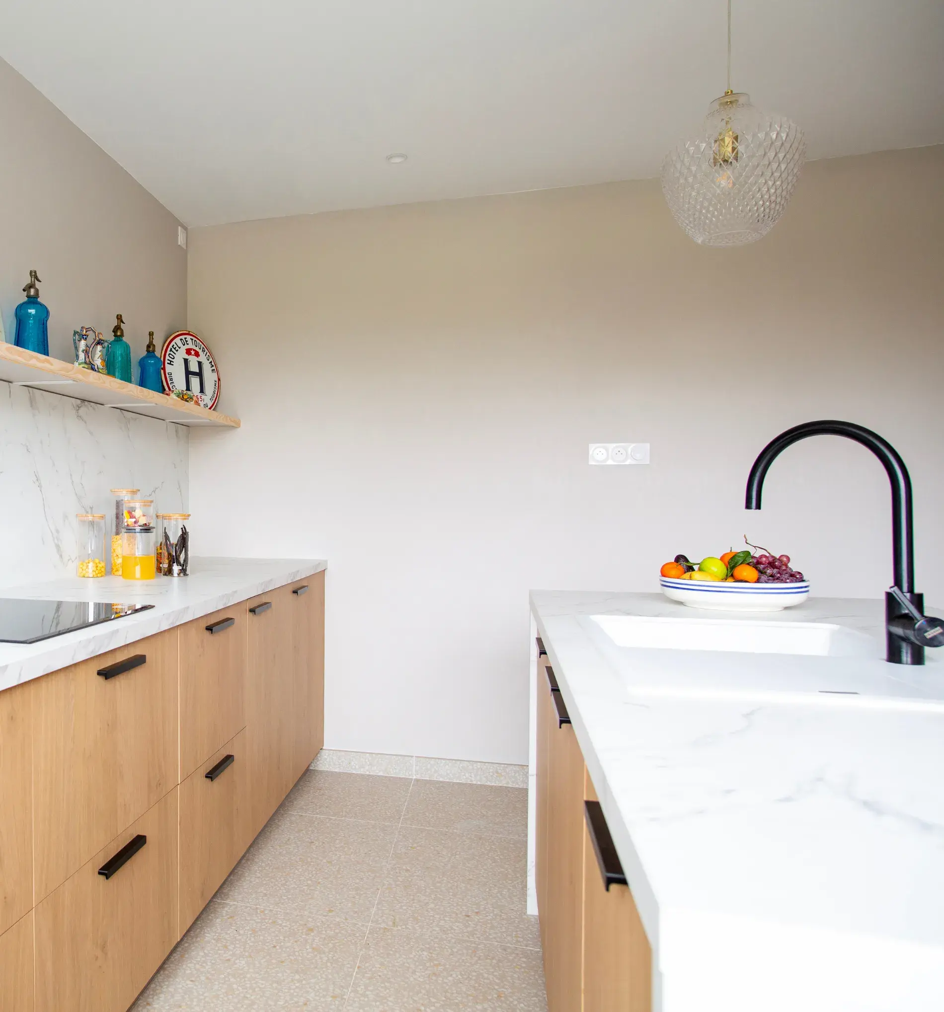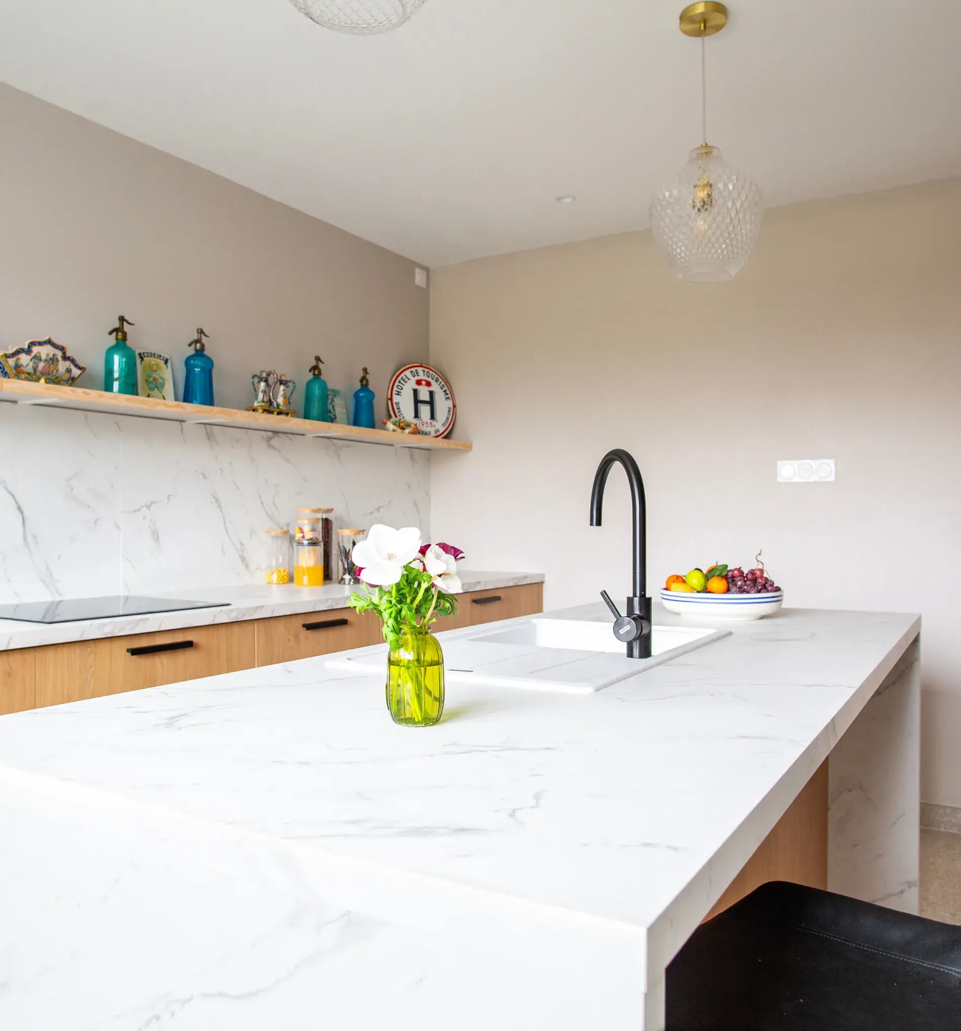 Cette cuisine se distingue par sa clarté et la pureté de ses lignes. Chaque élément a été pensé pour créer une atmosphère apaisante et fonctionnelle, où la lumière circule librement et où l’organisation est au cœur du projet.